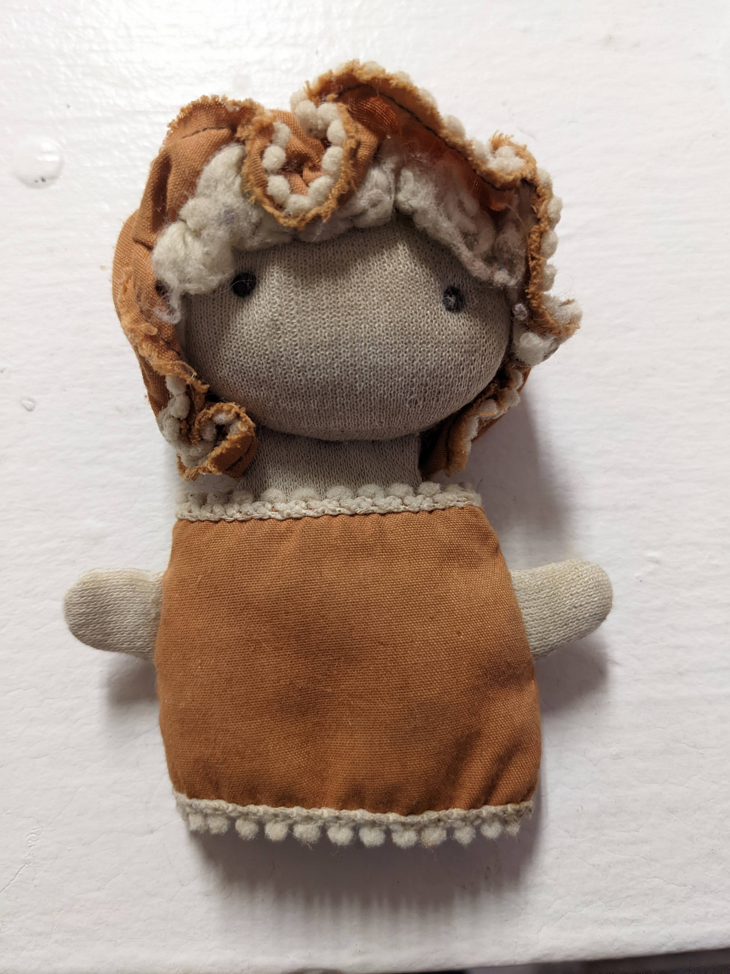 When I was a young teen, I sewed a few dolls of my own, with a base design inspired by Carmen. For reasons I no longer remember, however, I did not give my dolls any arms.